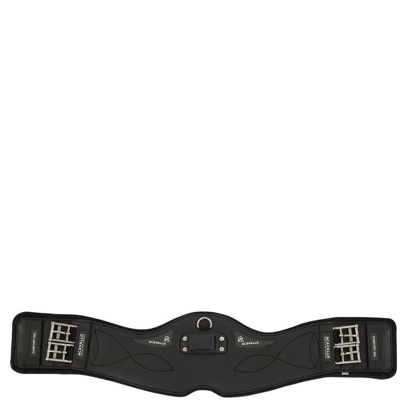 Synthetic, anatomically shaped dressage girth with comfort gel, which allows for better breathing and increased freedom of movement. The airflow gel padding covers a large area of the horses belly without pinching. The special design relieves pressure on the organs and prevents excessive heat accumulation. The girth features elastic inserts at both ends and a centre D-ring and patented safety hook for the possible attachment of draw reins. This hook has been designed to eliminate the need for additional snap hooks or straps and buckle elements. In this way, the risk of entanglement and falling of the horse when jumping, is prevented. The girth has stainless steel roller buckles with a rubber band. As a result, the prong will quickly find the punch hole of the billet, which makes girthing easier. The girth loops ensure that the girth stays perfectly in place.