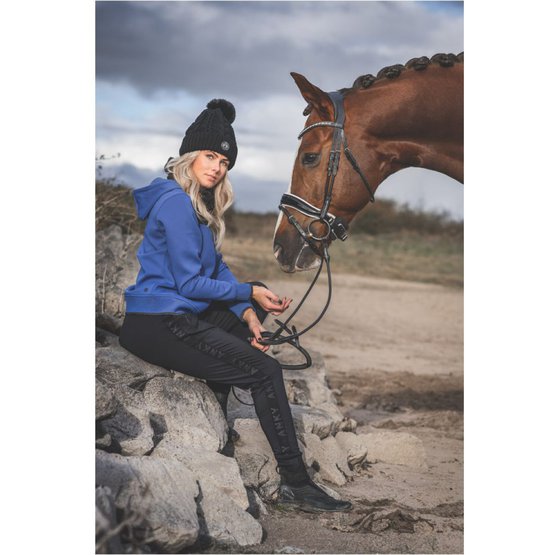 • Black elastic tape with dark silver branding along both side seams