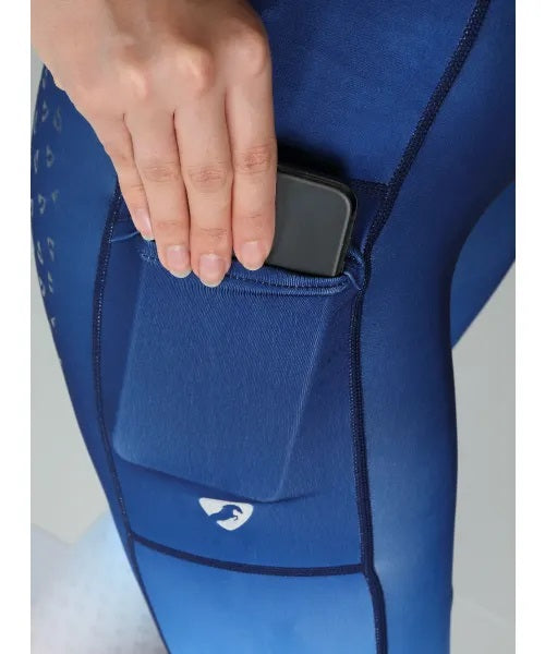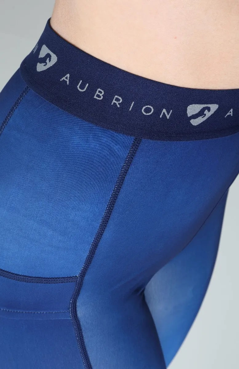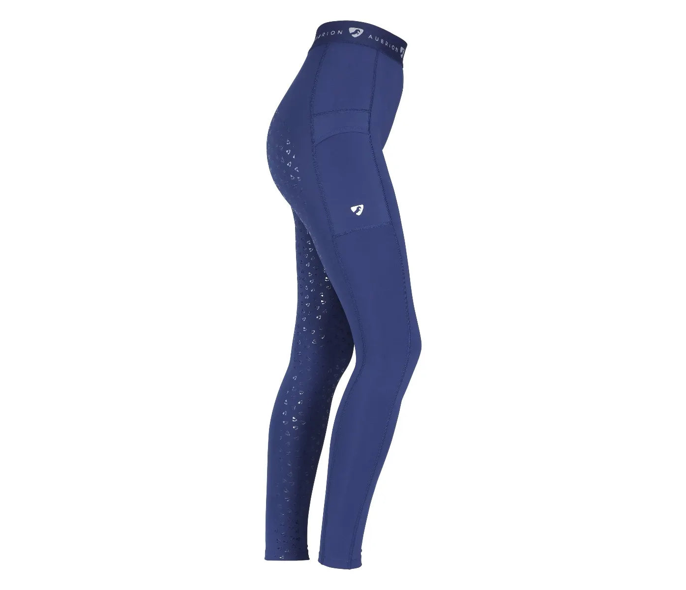 These sporty, ultra-lightweight riding tights feature minimal seams for maximum comfort. Style detail: full silicone grip seat, flatlock seams, quick dry fabric, elasticated waistband, thigh phone pocket, Aubrion emblem. Ladies.