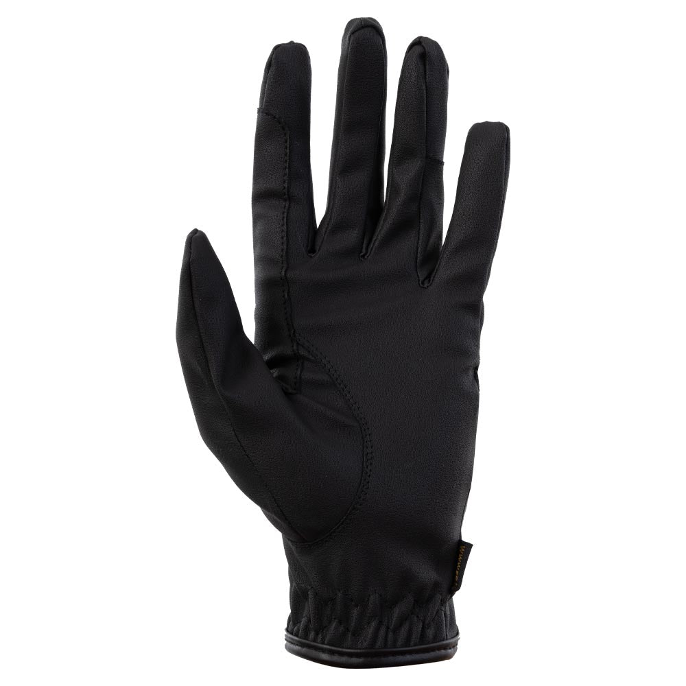 These comfortable and stylish gloves are made of synthetic leather and fit closely around the hands thanks to the elasticated wrist and the sturdy Velcro closure. The subtle glitter trim gives the glove an extra beautiful look.