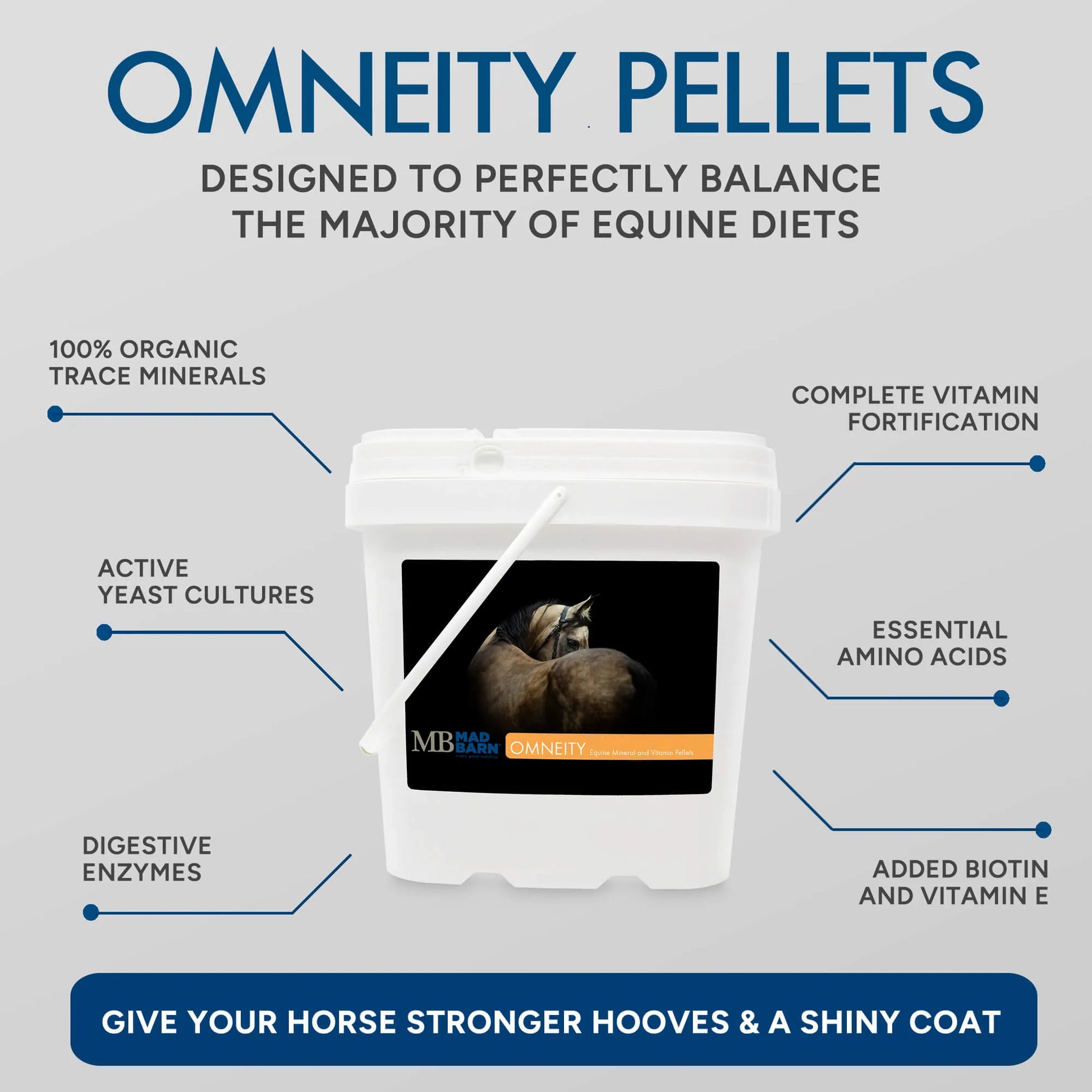 Mad Barn’s Omneity® P is a vitamin and mineral supplement pellet designed to provide every horse with optimum, balanced nutrition – naturally.