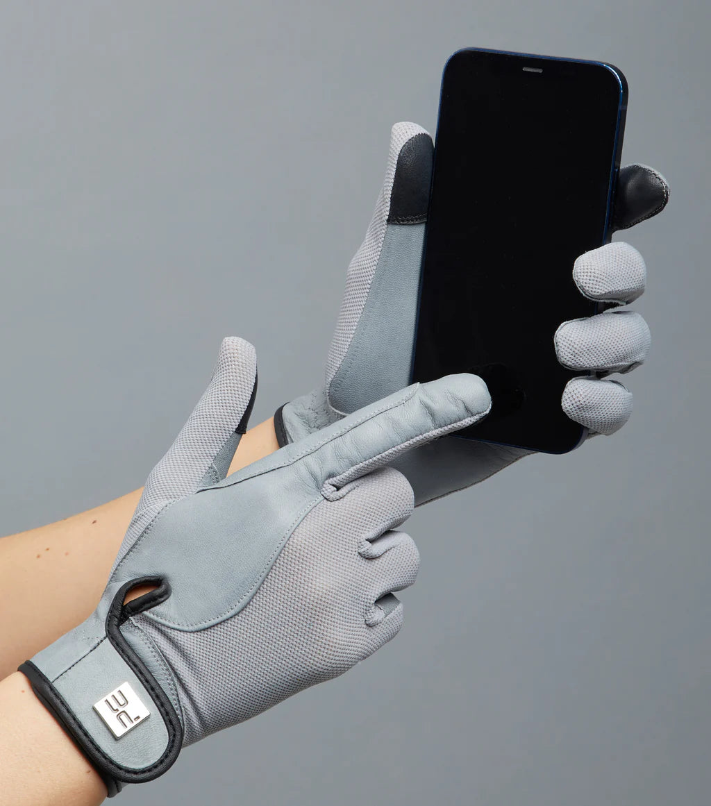 Premier Equine UK Bordoni Leather Mesh Riding Gloves Grey