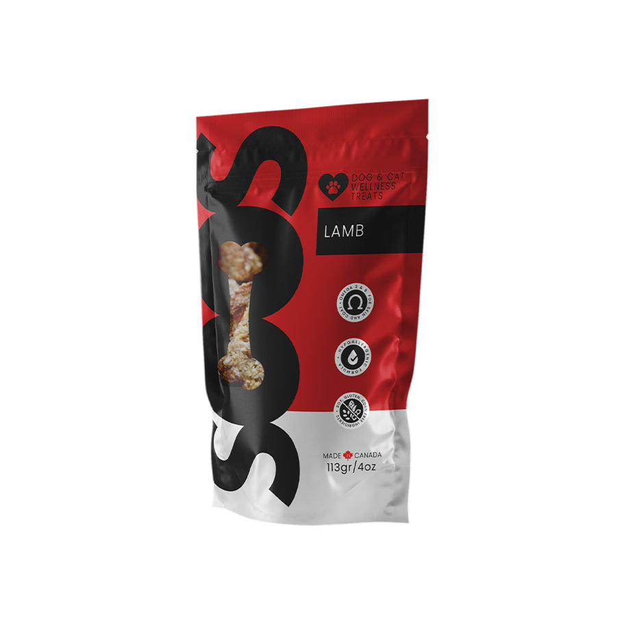 SOOS WELLNESS treats are naturally delicious and a natural source of protein, Omega 3 & 6 and fiber that supports a healthy digestive system. SOOS WELLNESS Lamb Treats are just that: real premium lamb meat WITHOUT any artificial preservatives, additives or colours. Perfect for dogs with limited diets.