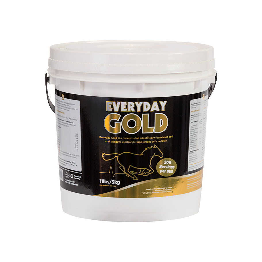 EVERYDAY GOLD by TRM is a scientifically formulated powdered electrolyte-replenishing supplement for horses. Contains essential electrolytes and vitamins in an amino acid and glucose base. Electrolyte Gold will "refresh" horses in training. The addition of high levels of the antioxidant Vitamins E (1000iu) and C (750mg) will also protect muscle tissue by eliminating ‘free radicals', potentially harmful and damaging by-products of exercise. Glycine and Glucose improve the rate of absorption of electrolytes in the gastrointestinal tract.