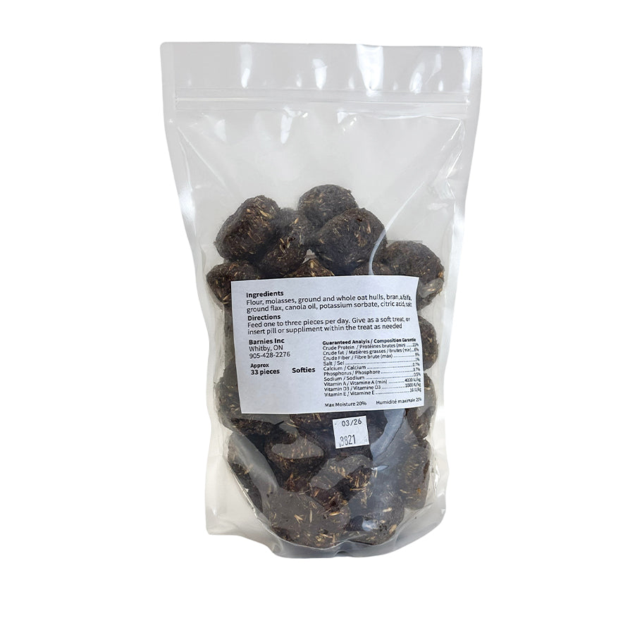 Barnies offers a NEW delicious treat for horses—soft, fresh, and all-natural snacks sweetened with molasses and crafted with care. These Softies are perfect for mixing with supplements, helping to administer pill medications, and are especially suited for older horses. As a proudly Canadian company, Barnies focuses on creating and distributing premium, all-natural horse treats. They take pride in delivering high-quality products that horses and ponies love. With Barnies, you can confidently give your equine companions the best, ensuring they enjoy every special moment.