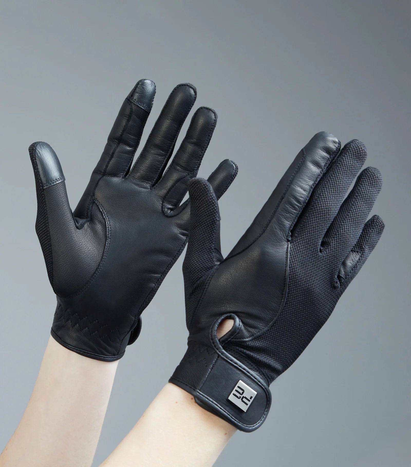 Premier Equine UK Bordoni Leather Mesh Riding Gloves - Black