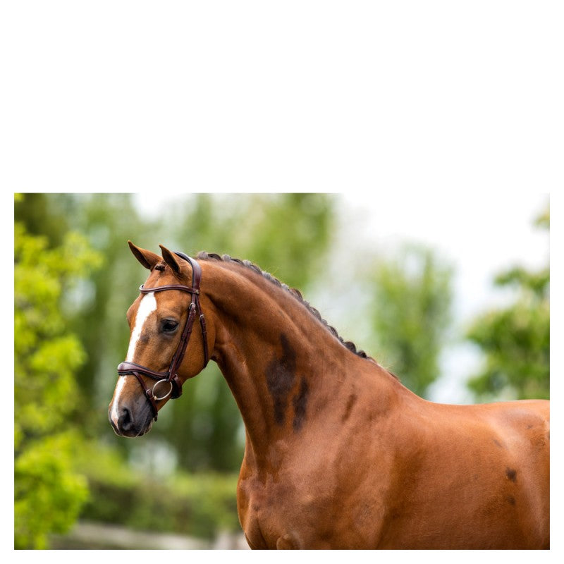 This anatomically shaped bridle stands out for its U-shaped noseband and the wide, soft headpiece.