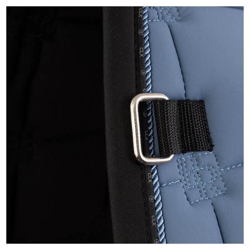 The stylish CLX saddle pad has a square quilted design with BR logo stitching for a unique look and finished with two subtle pipings. The saddle is equipped with adjustable girth loops and retaining straps with Velcro and has an extra reinforcement of synthetic leather at the girth loop.
