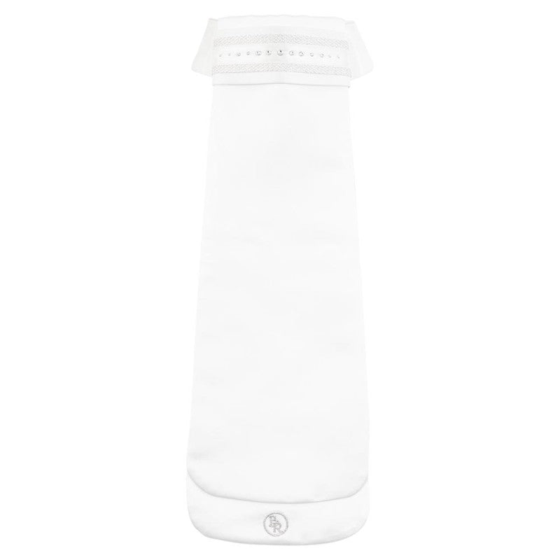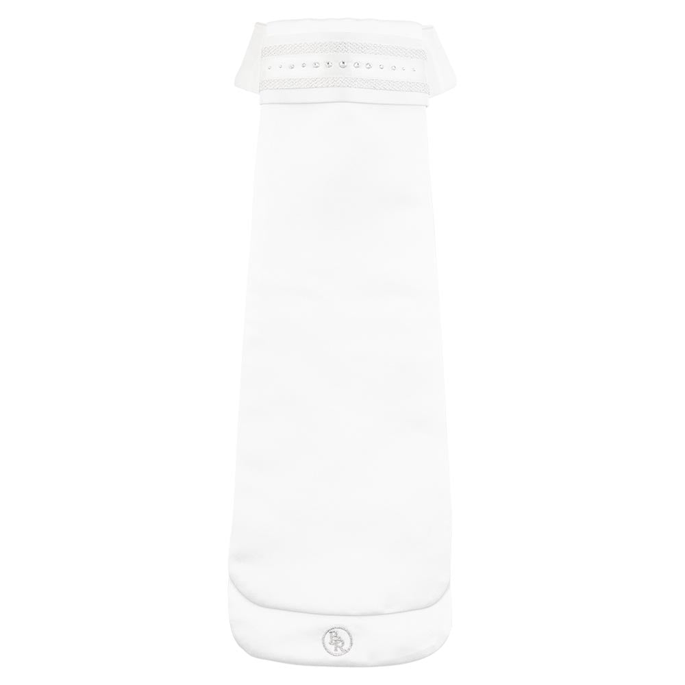 Luxury stock tie made of a beautiful shiny satin. The stock tie is decorated in the middle with silver glitter mesh and a satin band with imitation diamonds. The stock tie has a silver-coloured embroidered BR logo at the bottom.