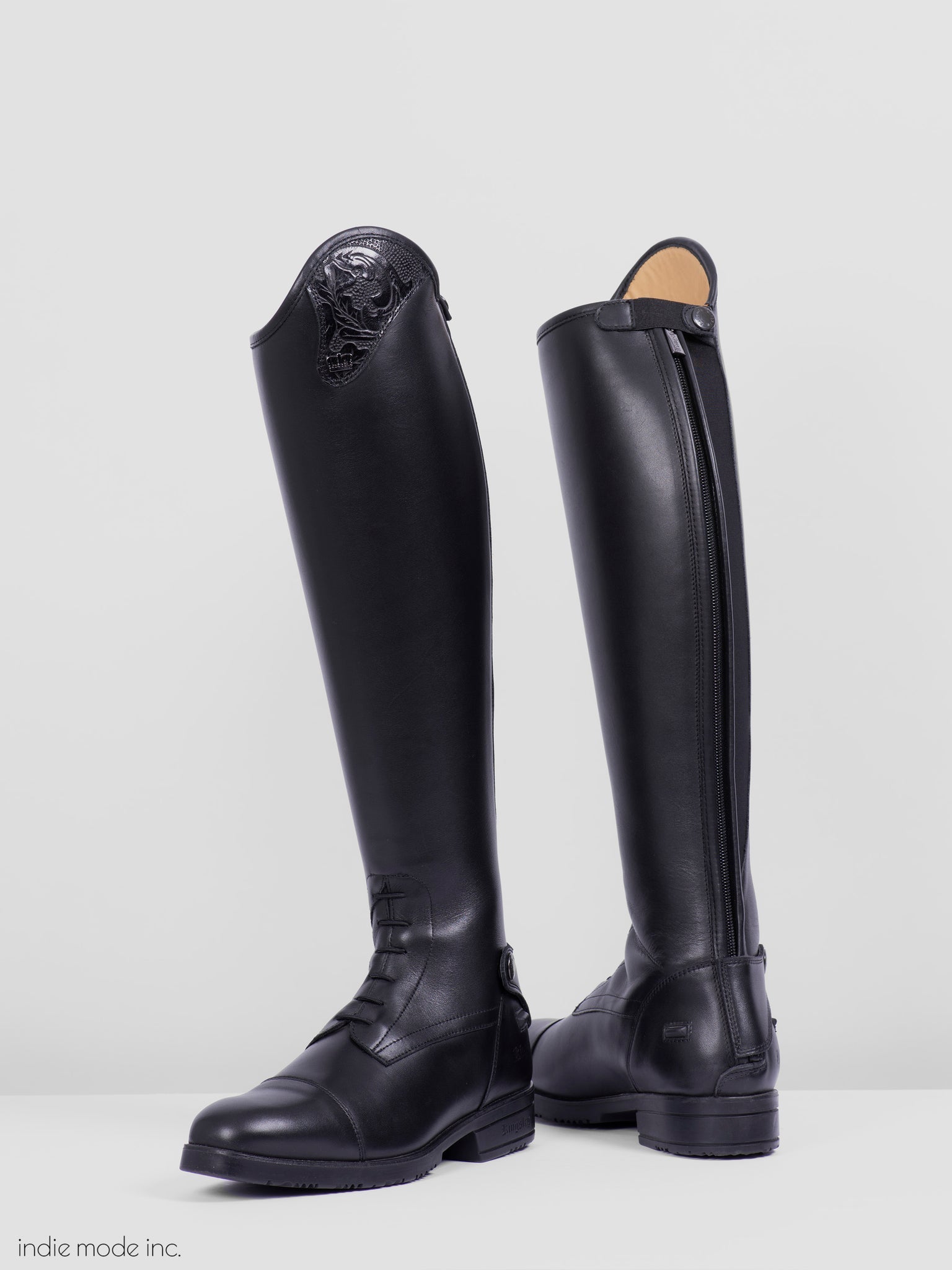 Montreal Special is a sporty riding boots for jumping by Kingsley. High quality leather and sole. Featuring Leather 311 Oak Black Top. Equipped with elastic insert along the zipper and elastic lace for extra comfort and freedom of movement. Also features spur rest, zipper protector.