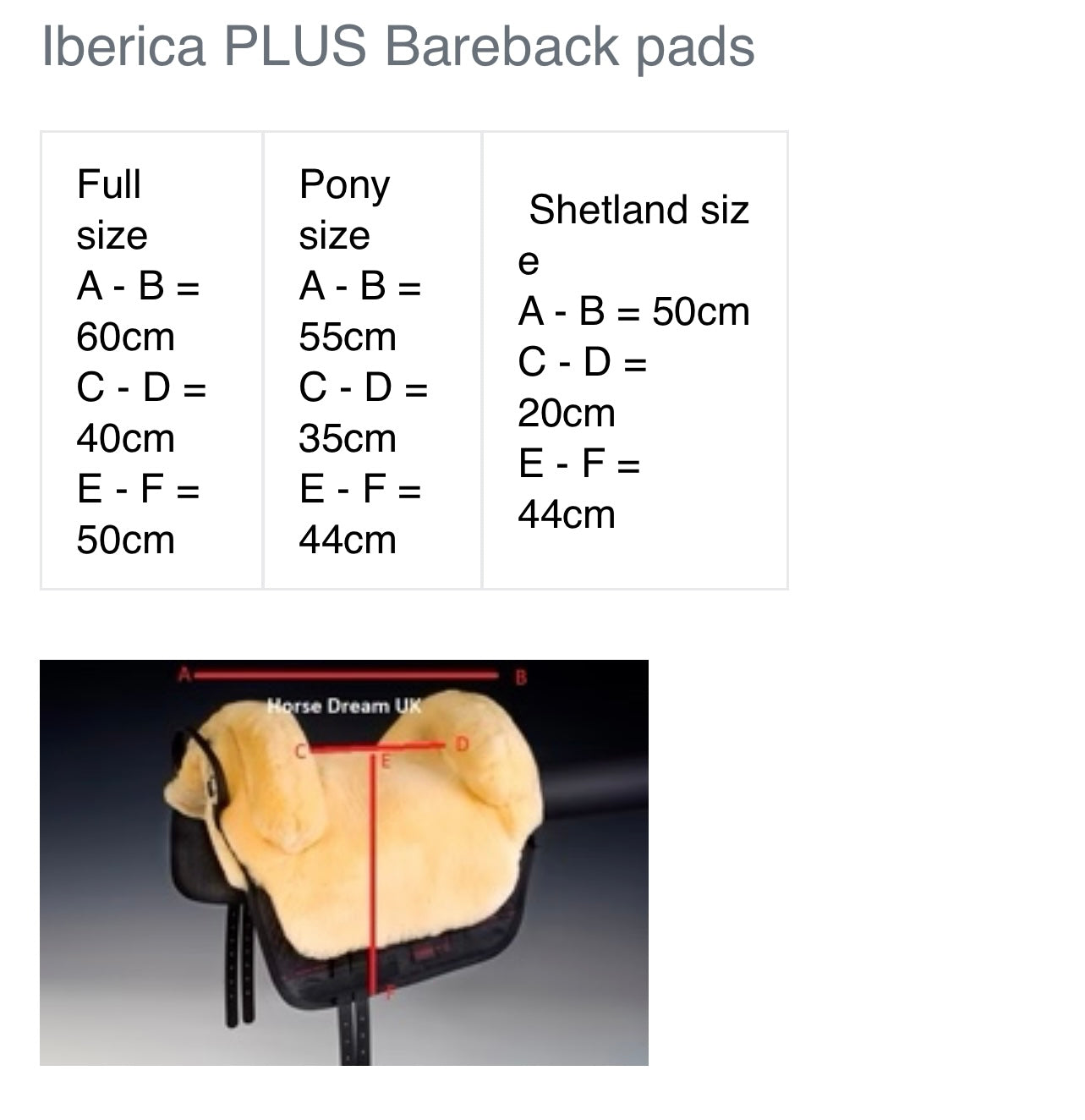 Pony size pad is suited to children and small adults up to approx US jeans size 8. The Iberica offers a little more seat room and some riders size 10 prefer the snug fit of the pony size.