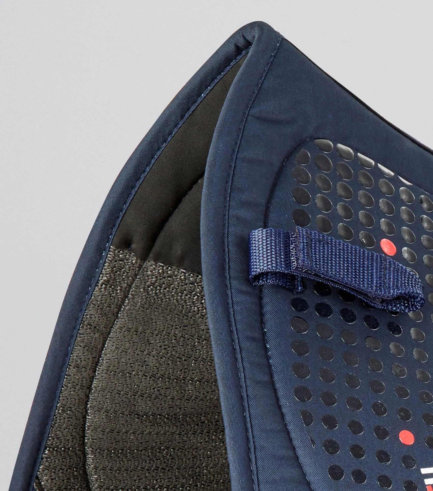 An innovative dressage saddle pad crafted from a combination of technical gels, anti-slip and high quality cotton fabrics.