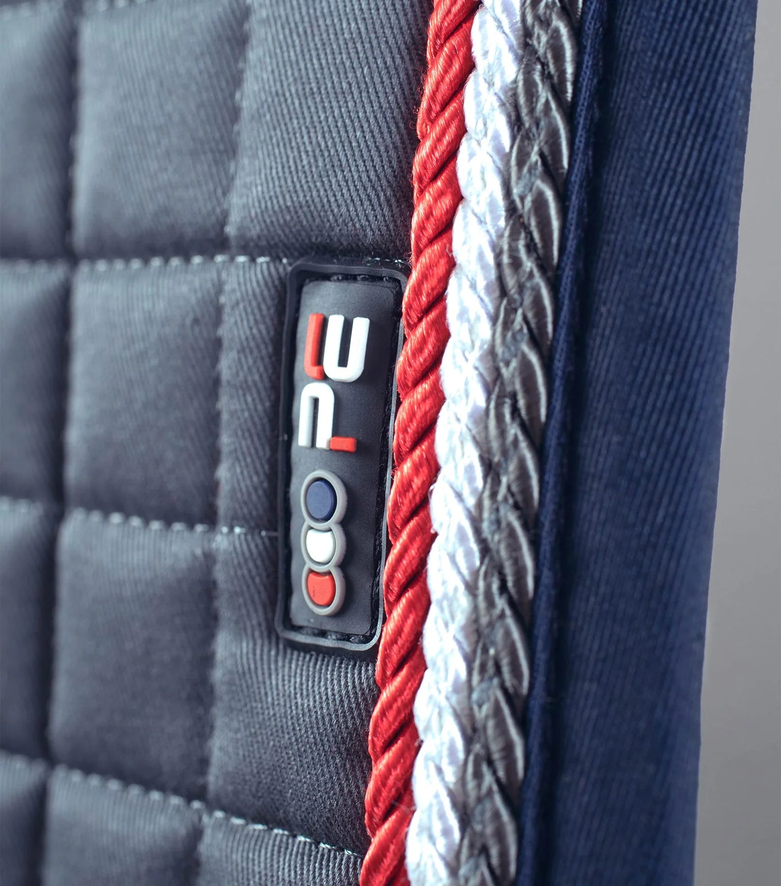 Moisture and sweat are drawn through the numnah by wicking fibres present in the filling. A 600 denier polyester girth panel provides anti-rub protection. Complete with decorative twisted ropes and double Velcro D loop straps. A fantastic dressage square for those wanting to make a statement in the equestrian field, ideal for everyday or competition use.