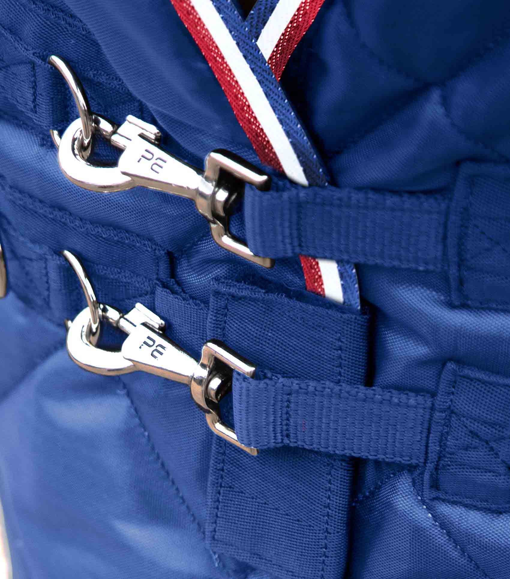 A high quality stable rug that provides excellent protection has been crafted in a breathable 420D ripstop polyester which acts as a barrier to your horse’s coat to repel dust, dirt and stains. The 100g technical thermo bonded fill helps to regulate your horse's temperature, delivering comfort, protection and warmth when needed. The quilting of the fabric layers gives this rug a cozy aesthetic and the anti-static polyester lining helps to prevent rubbing and is comfortable against your horse’s skin. Complete with quick release chest clips and cross surcingles, this stable rug is a must-have for milder months.