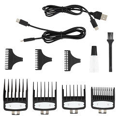 Both clippers have a different blades structure. The large clipper combines a ceramic upper blade with a lower blade that is equipped with powder metallurgy with a ventilation structure to prevent overheating. The small clipper contains blades made of extra-hardened steel. The cutting length of the large clipper can be set in as many as 4 positions. For both clippers, different attachments can be found in the luxury storage case with zipper. In addition, you will also find 2 USB-C charging cables, oil and a cleaning brush.