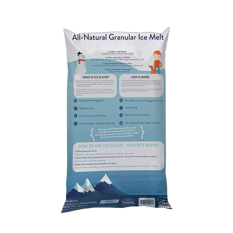 AN ALL-NATURAL ICE MELT THAT REALLY WORKS: Ice Slicer’s gradations provide stabilizing traction, while its 60+ minerals help it brine faster and last longer than typical rock salt. Independent lab testing has shown that Ice Slicer melts up to 3.5 times more ice in the first 10 minutes than white salt.