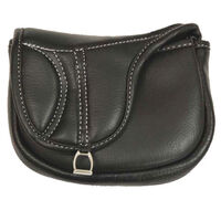 Black supple leather. Easy access fold over flap. Belt loop on back