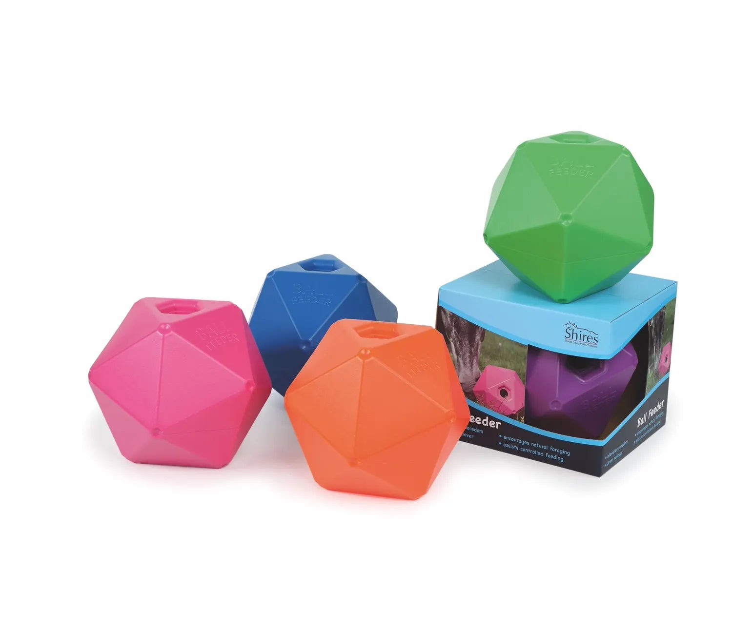 Encourages a more natural, slower eating pattern than feeding from a bucket. The Ball Feeder is a useful aid for relieving boredom or stress in the stable or paddock and for horses on box rest. Fill with pony nuts and let your horse explore how to release them. Small 'rewards' are dispensed as the ball is rolled around.