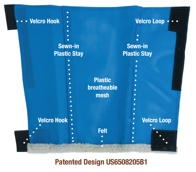 Made from flexible, plastic mesh to allow air circulation, Shoofly Leggins™ are easy to attach, comfortable to wear and will not sag due to their unique sewn-in plastic stays. And it’s patented!