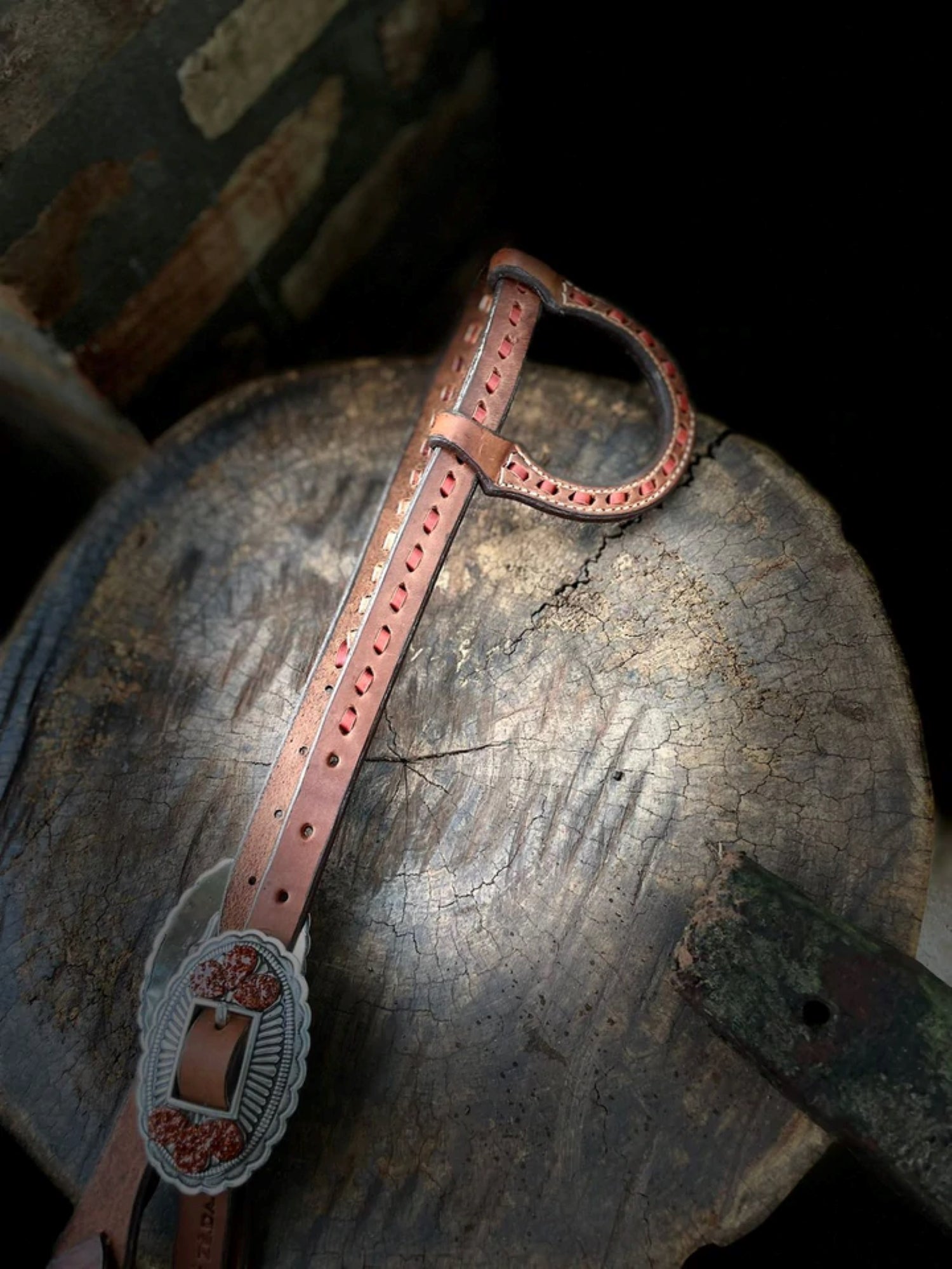 One Eared leather Western Headstall made by leather craftsman Ze Da Ora. Headstall is trimmed with leather lacing for a signature look.